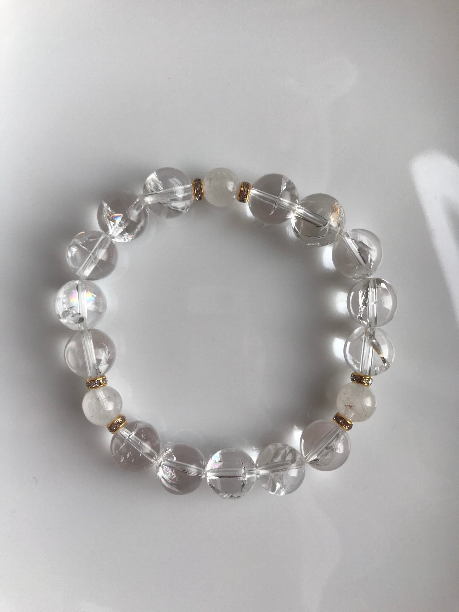 このヒマラヤのパワーの詰まったレインボーとスノーのピュアで素敵なブレスレットに願いを込めれば、きっと叶えてくれるでしょう。