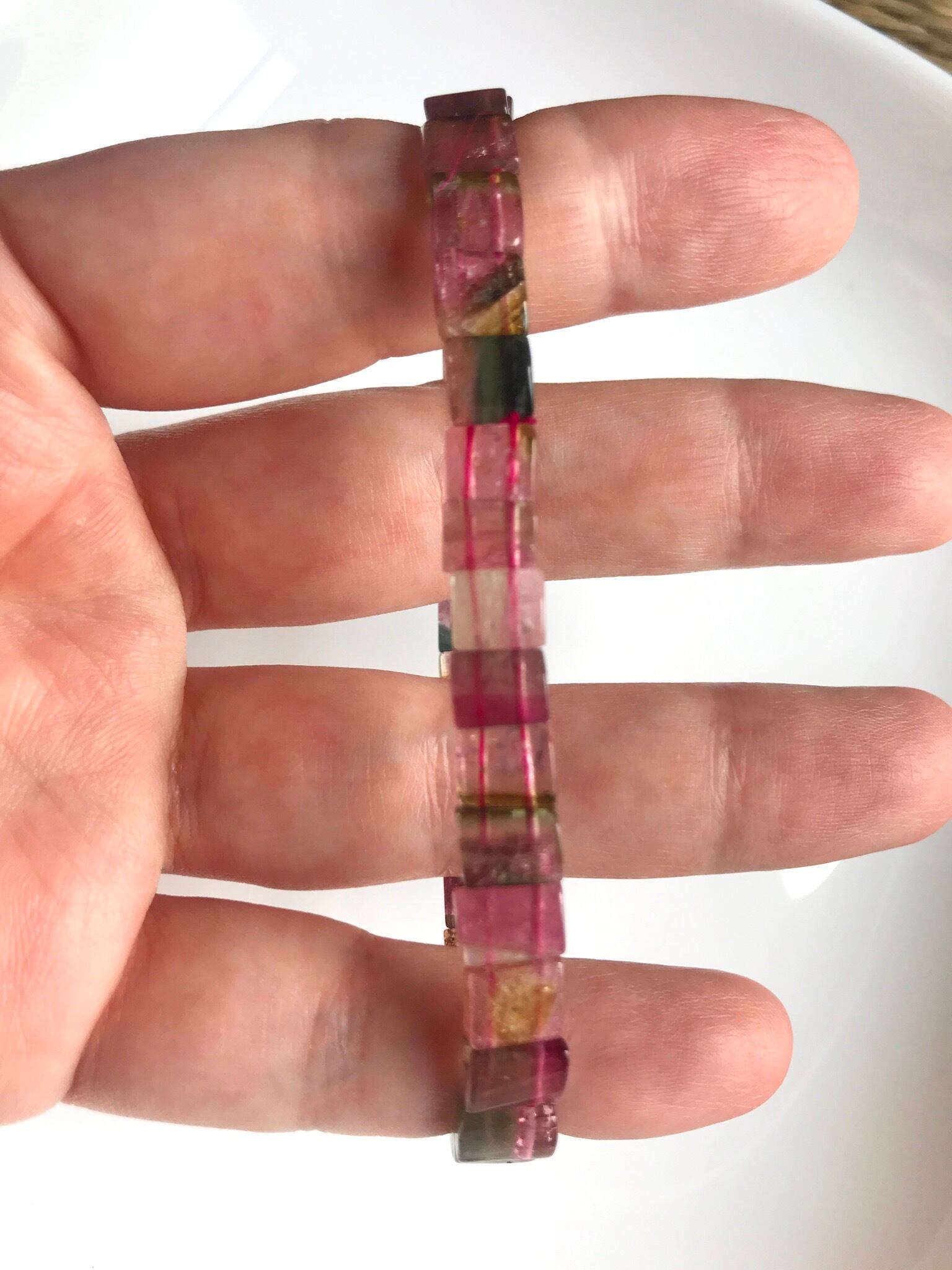 バイカラートルマリンスクエアビーズ約7x5.5mm(各ビーズの大きさに若干の違いあり)x32