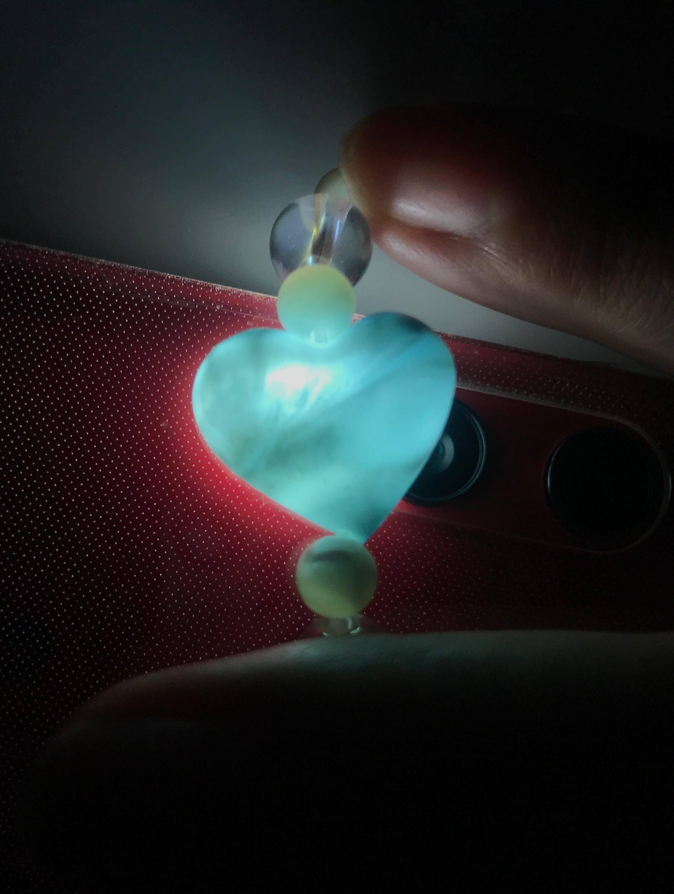 こちらは白っぽいトーンの涼しげな色味ですが、光に透かすと透過性もあり、美しいラリマーです。