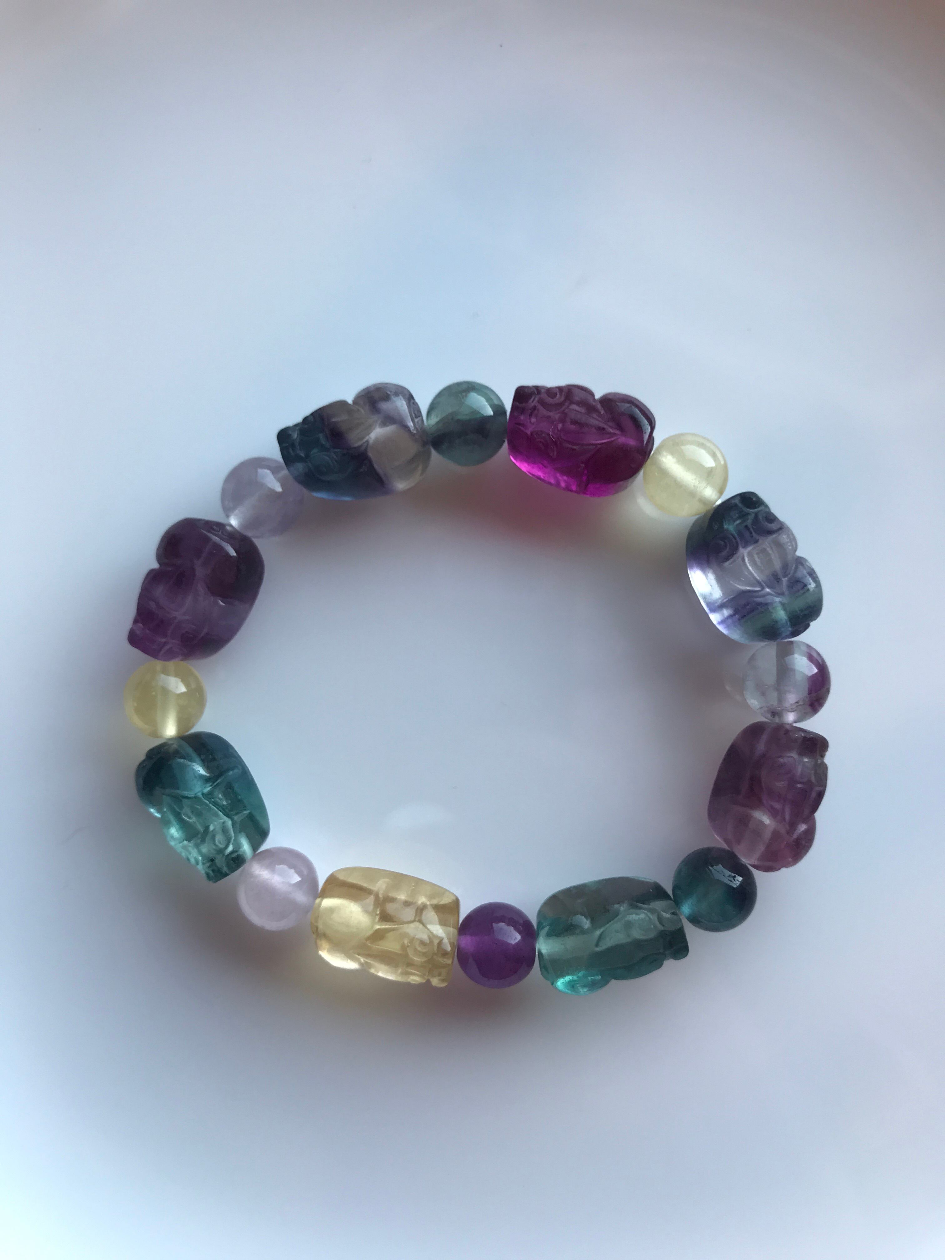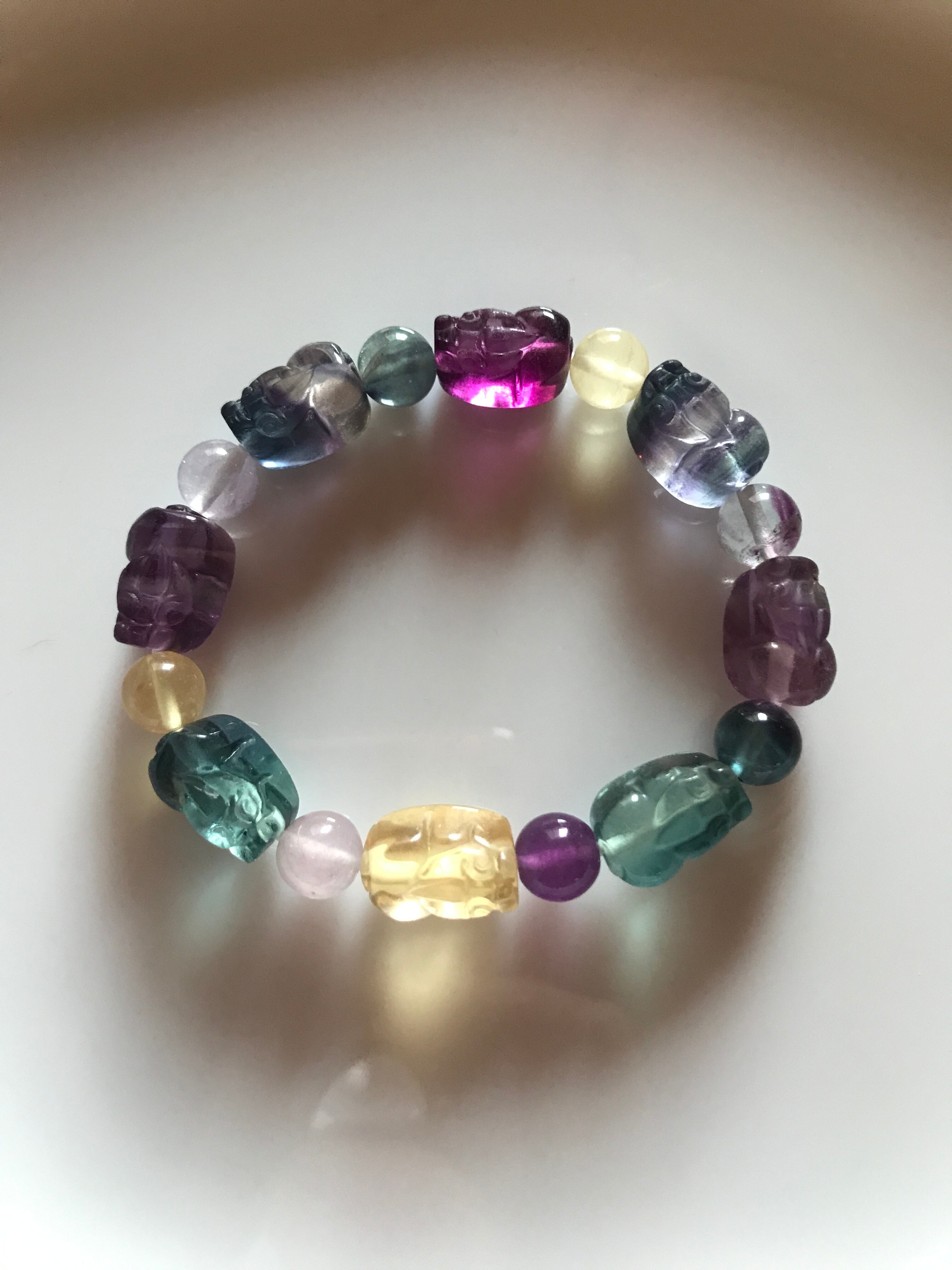 グミのような貔貅の可愛いミックスカラーのファントムフローライトブレスレットです。