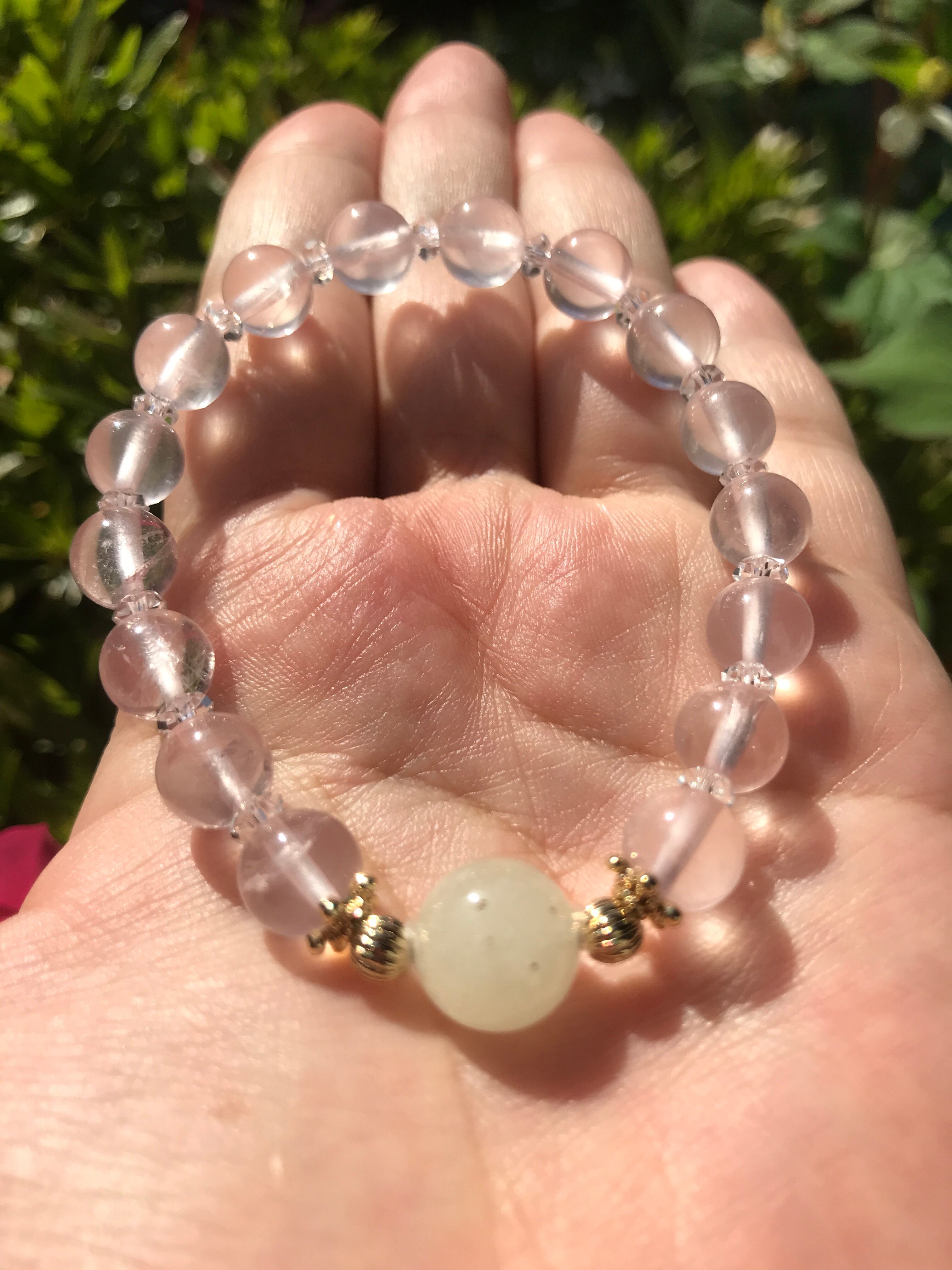 リビアングラス&ピンクメタモルフォーゼスデザインブレスレット