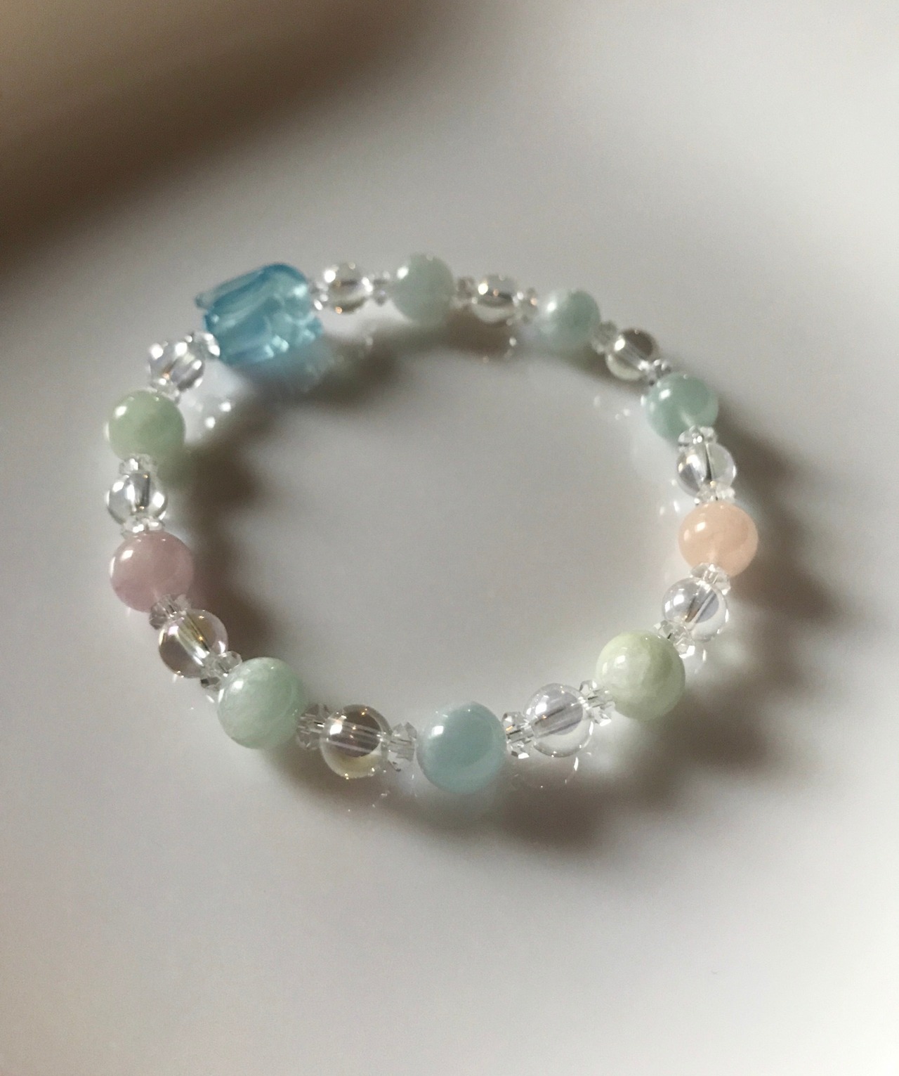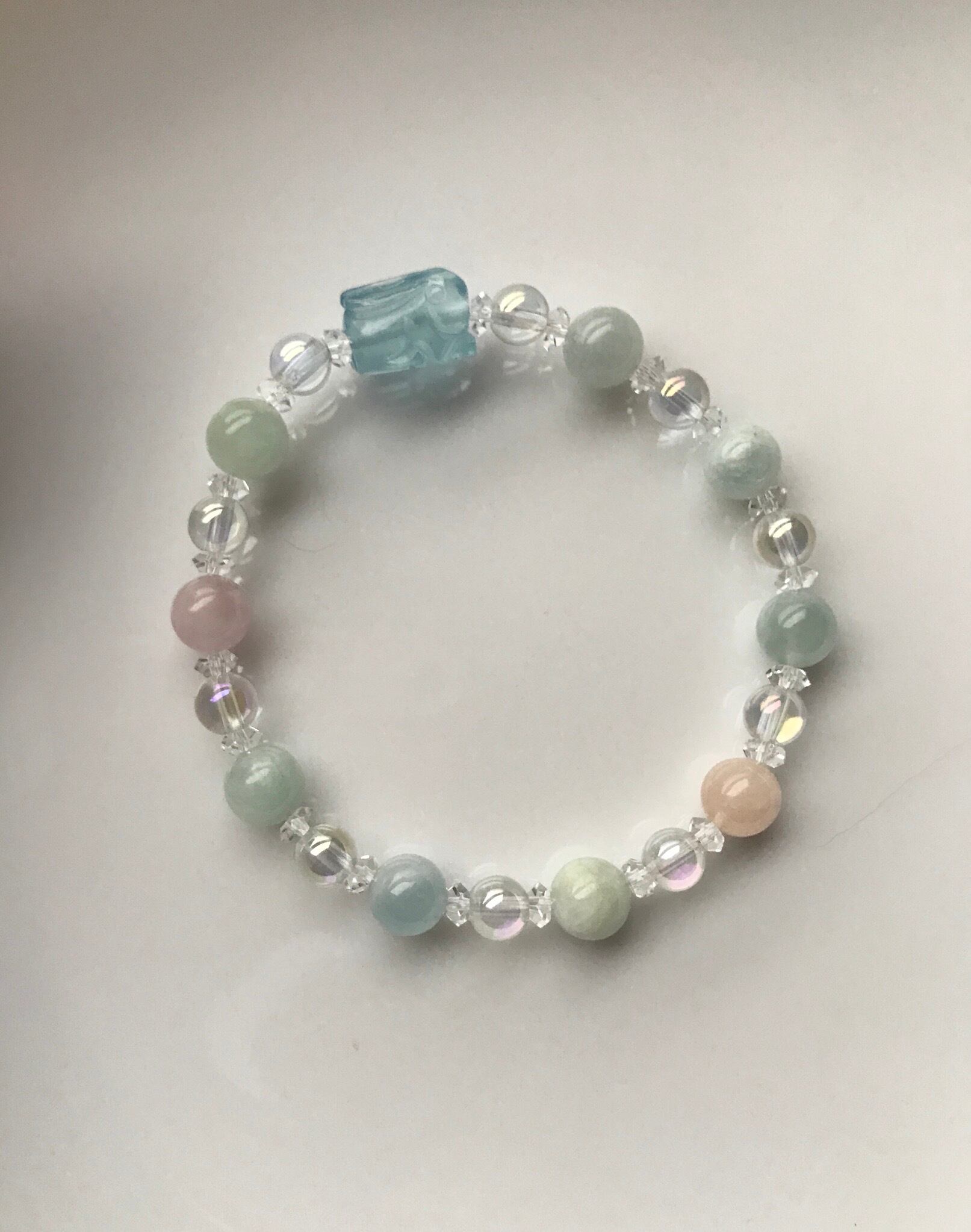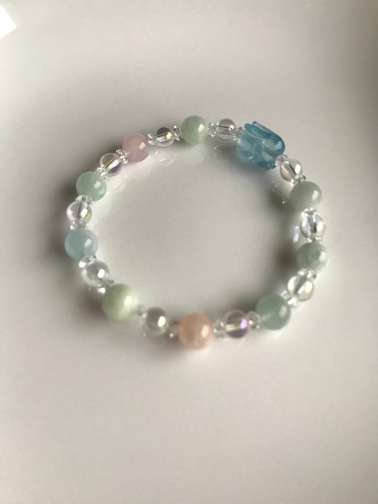 青いうさぎアクアマリン&ミックスベリルデザインブレスレット
