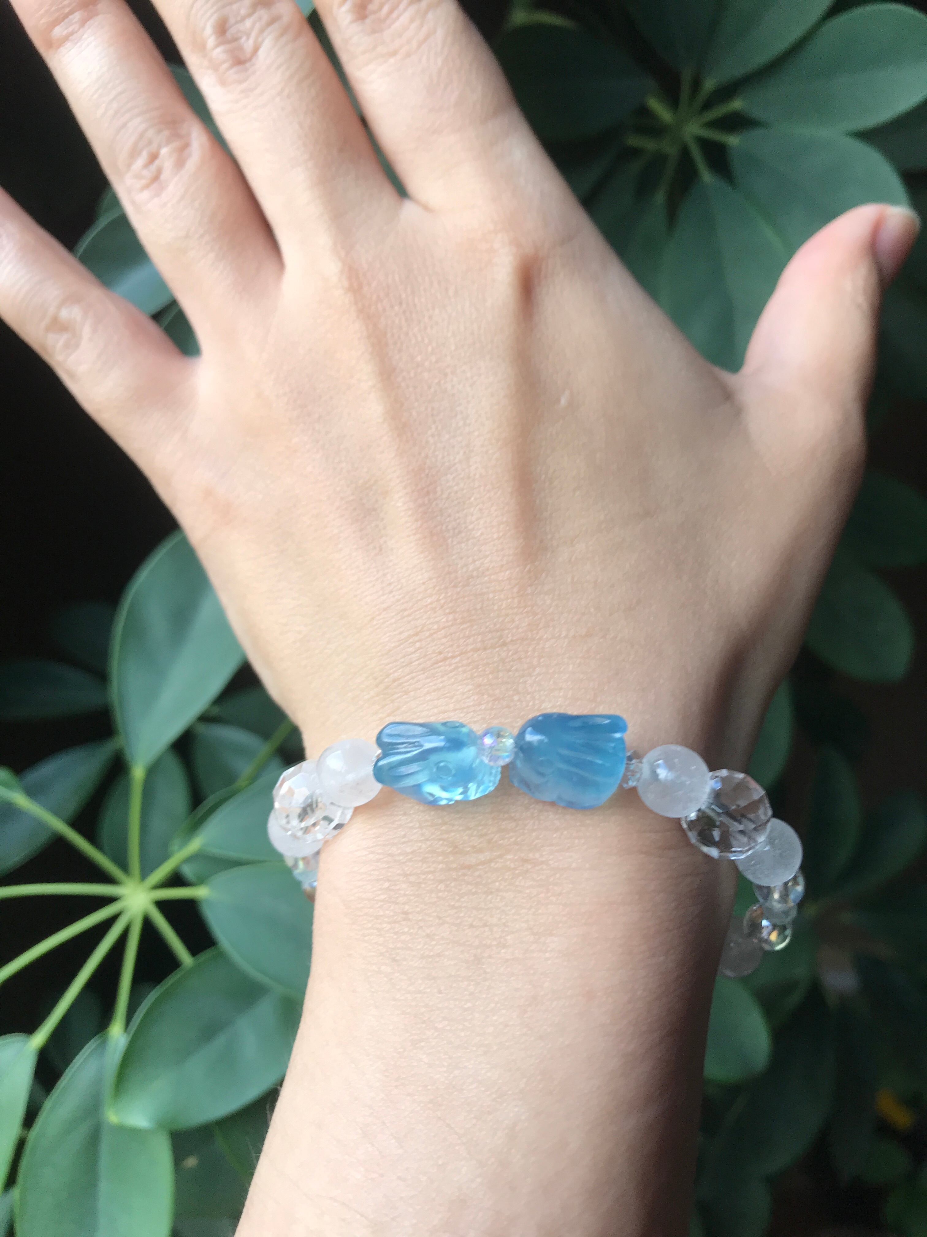 高品質アクアマリン手彫りうさぎ 約12x10x9mmx2