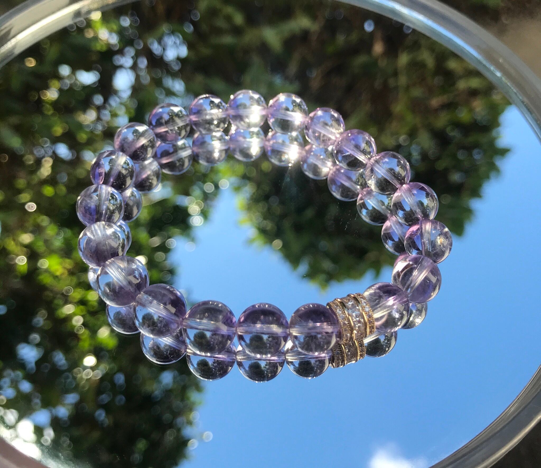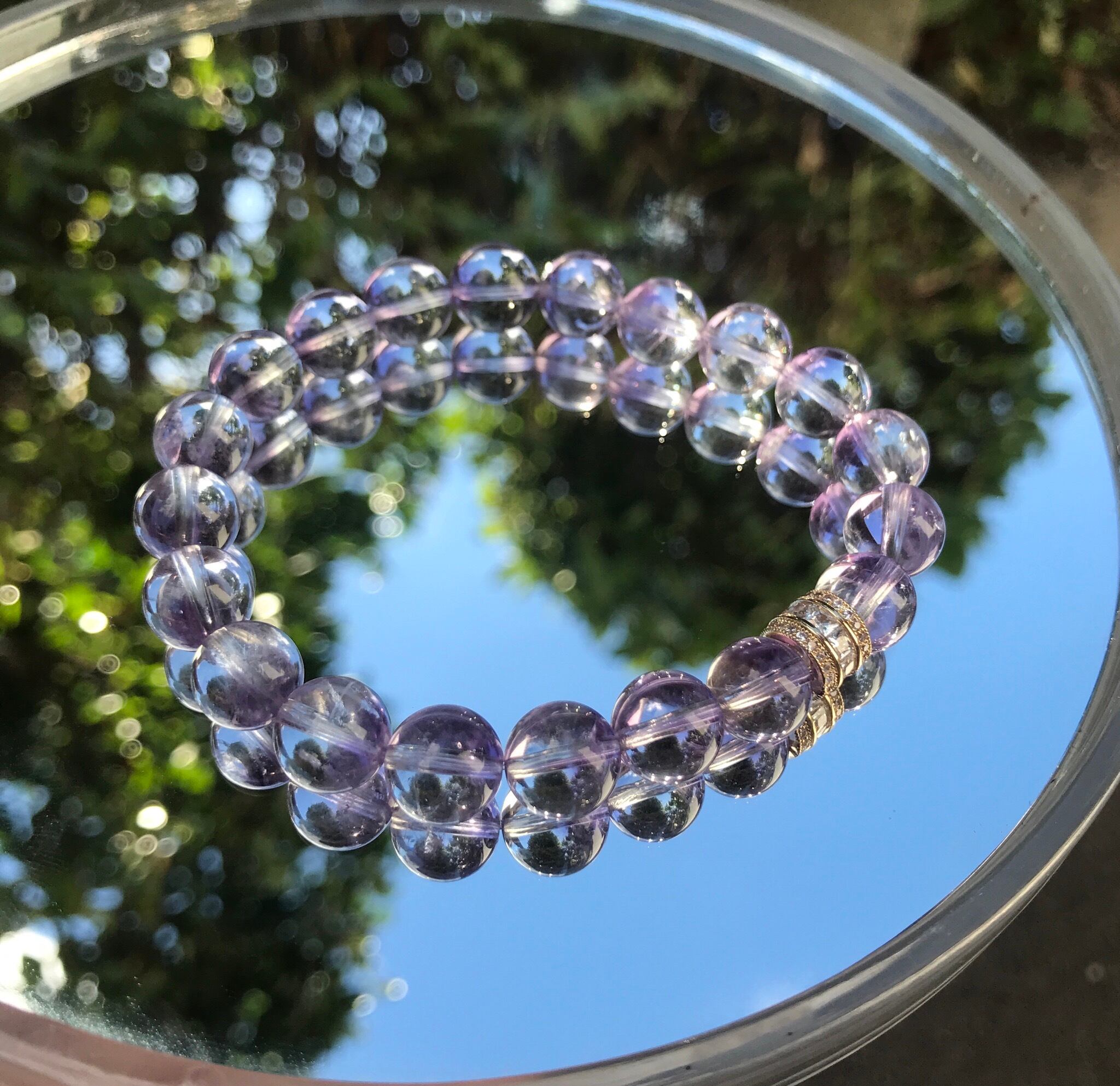 透明度が非常に高く、クラックインクルージョンもほとんどない、全珠に綺麗なファントムの見られる大変美しい高品質アメジストファントムです。