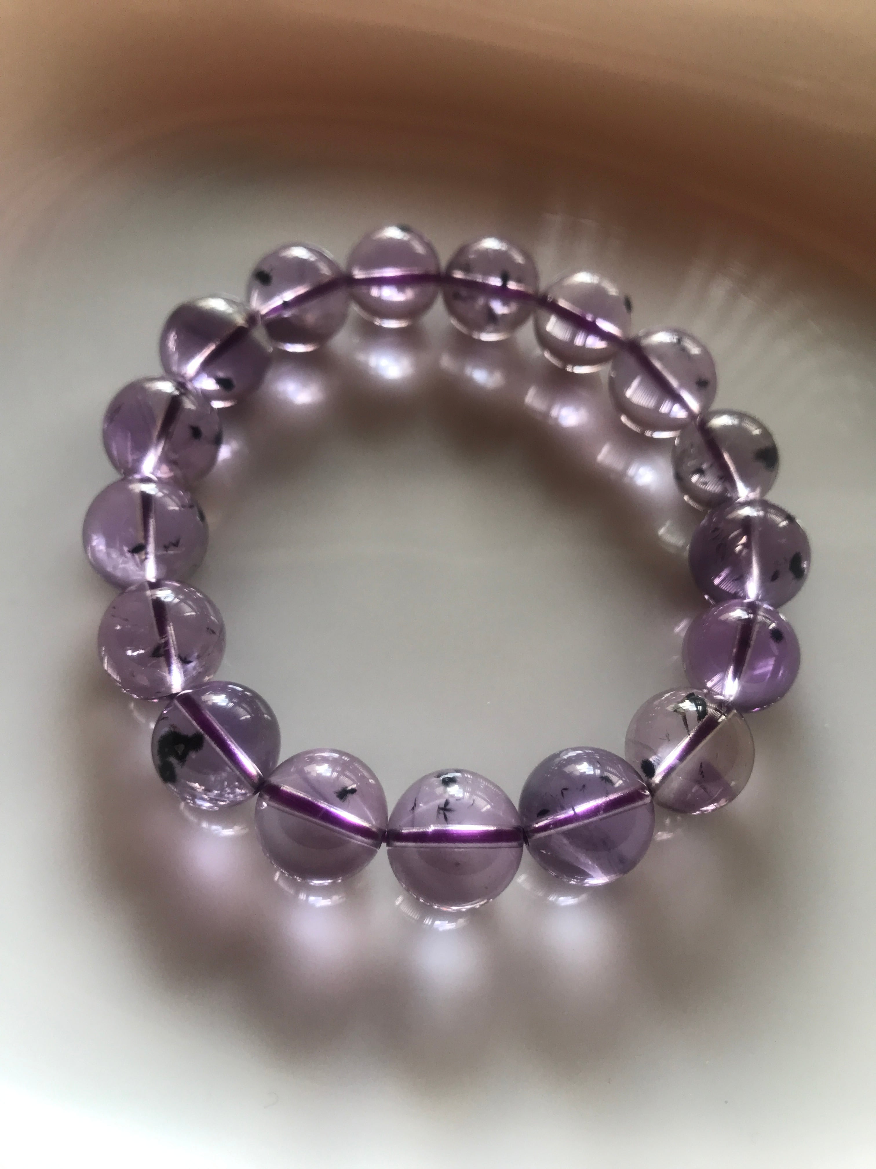 アメジストは透明度が高く、ファントムや虹の見られる珠もあります。