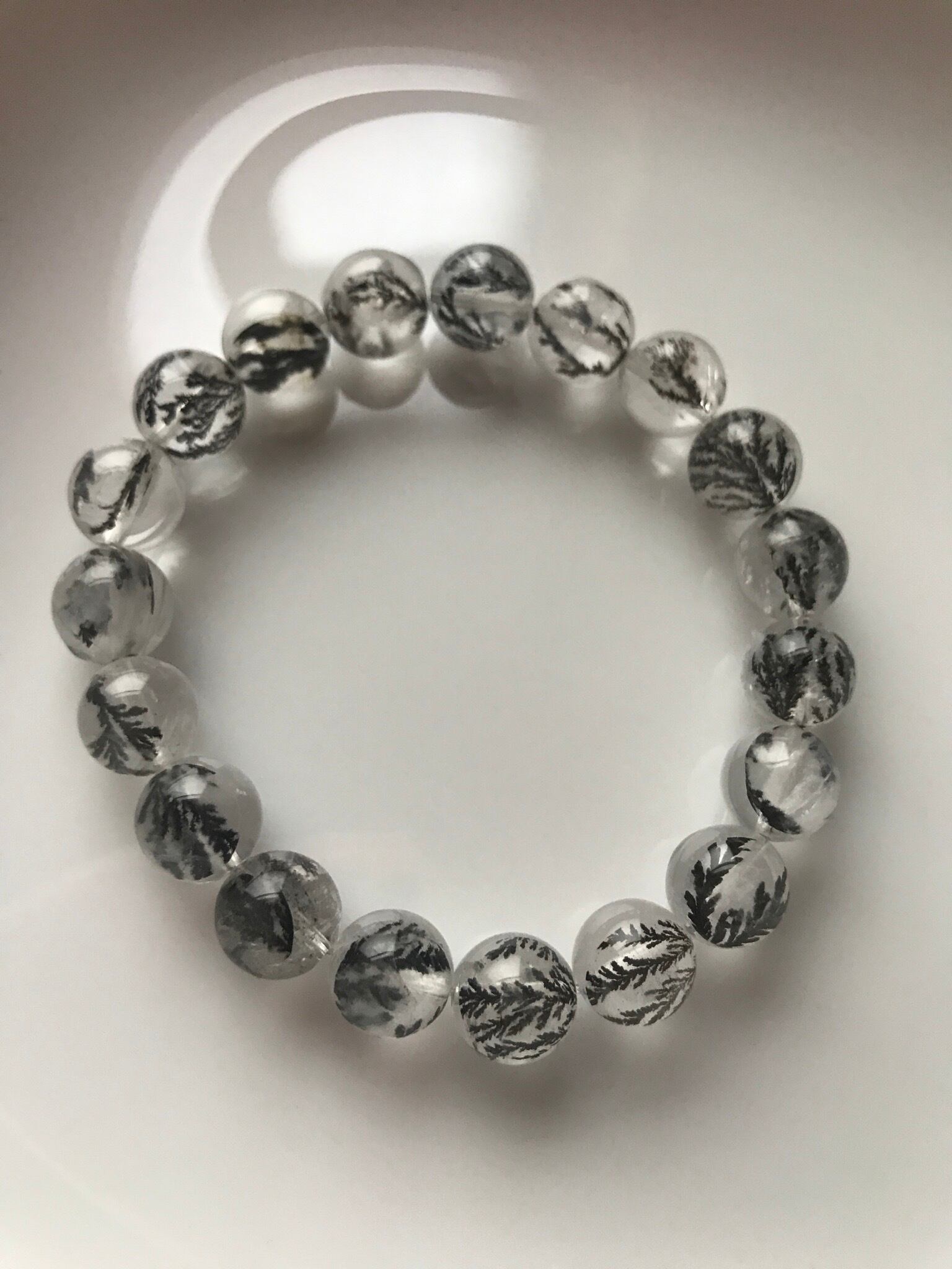 こちらは水晶に結晶していますので透明度が高く、全ての珠に樹木模様がハッキリと見えるとても貴重でレアなものになります。