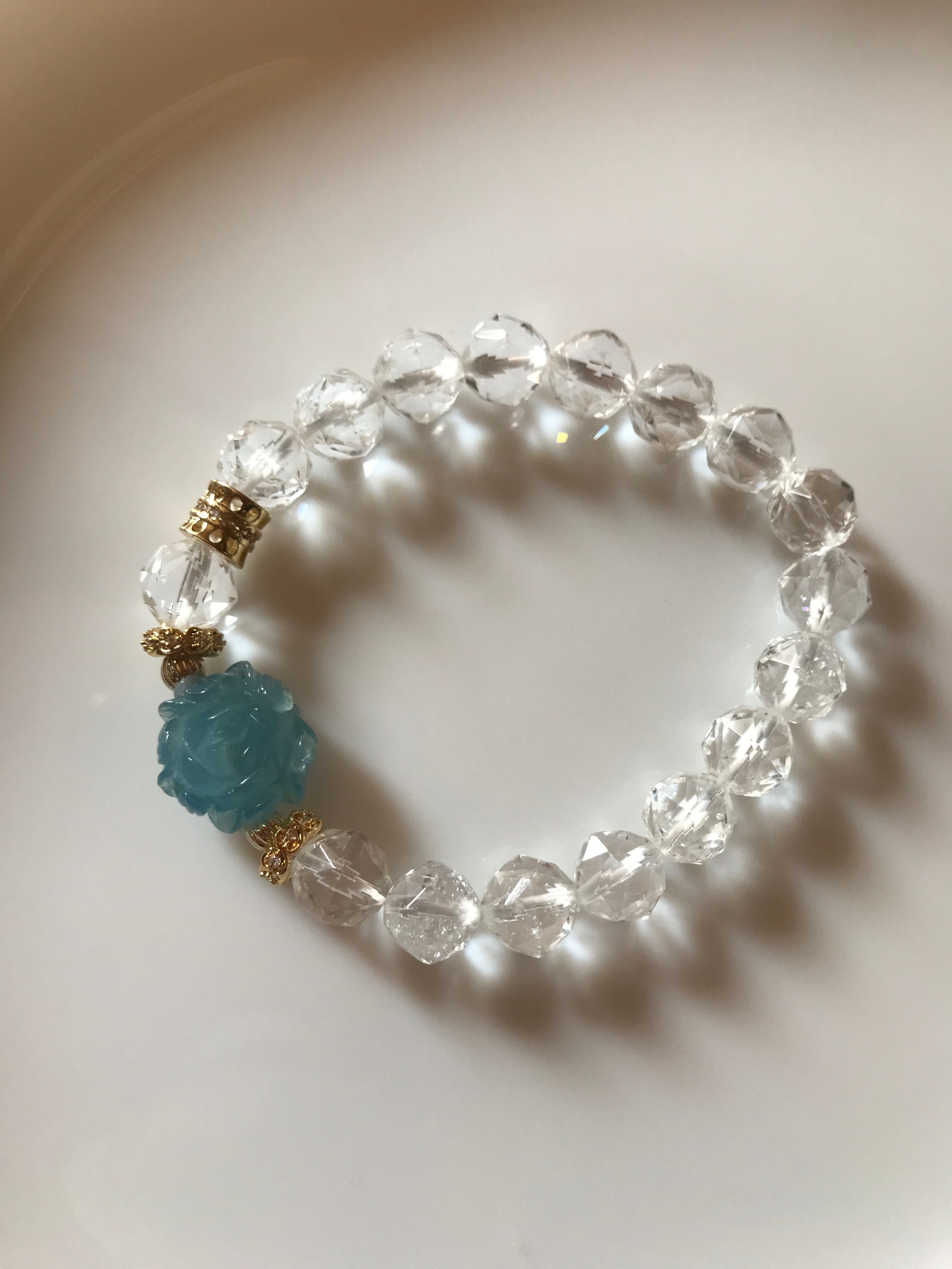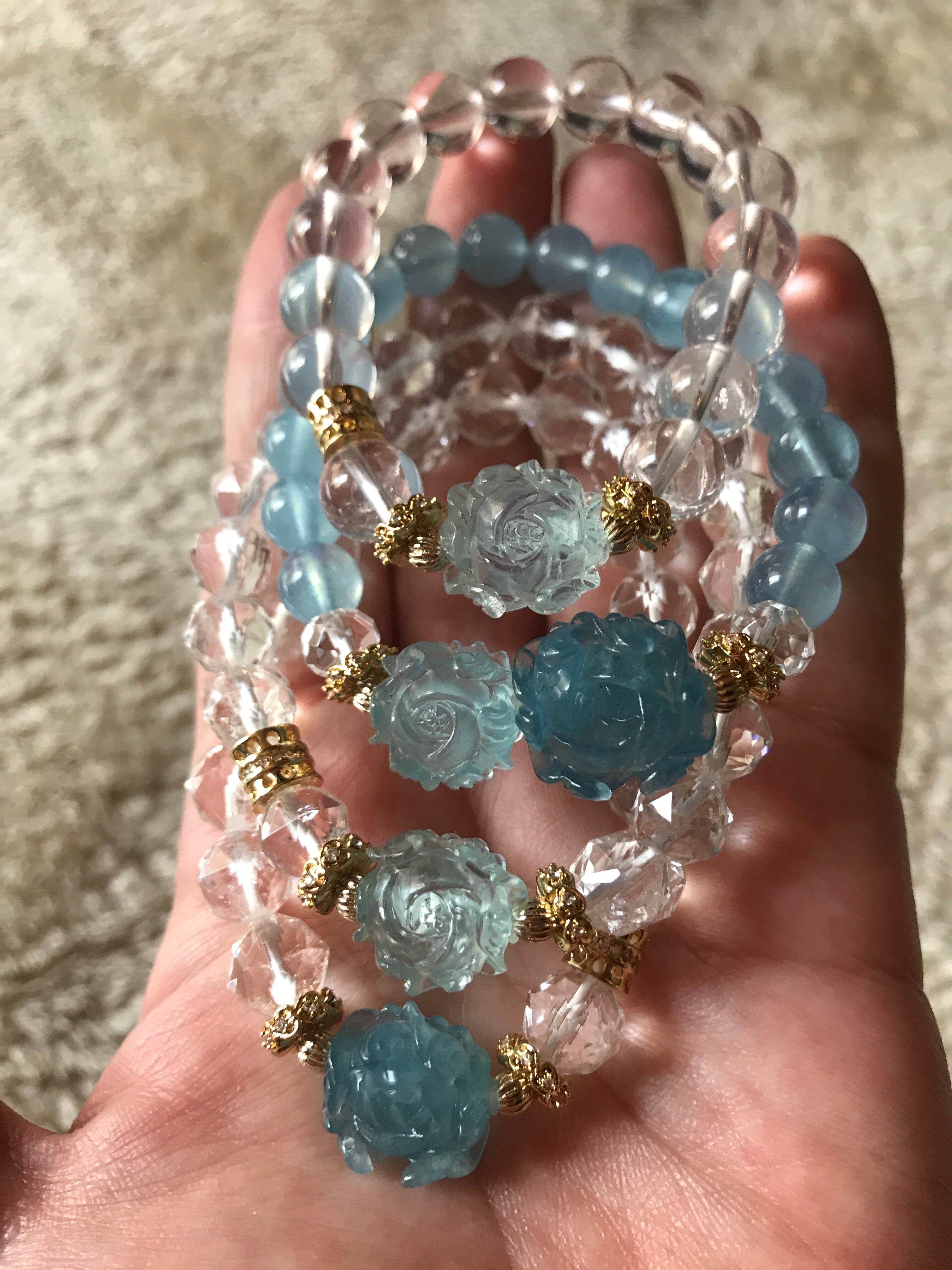 画像最後の5枚は別売りの他のアクアマリンお花デザインブレスレットとの比較です。