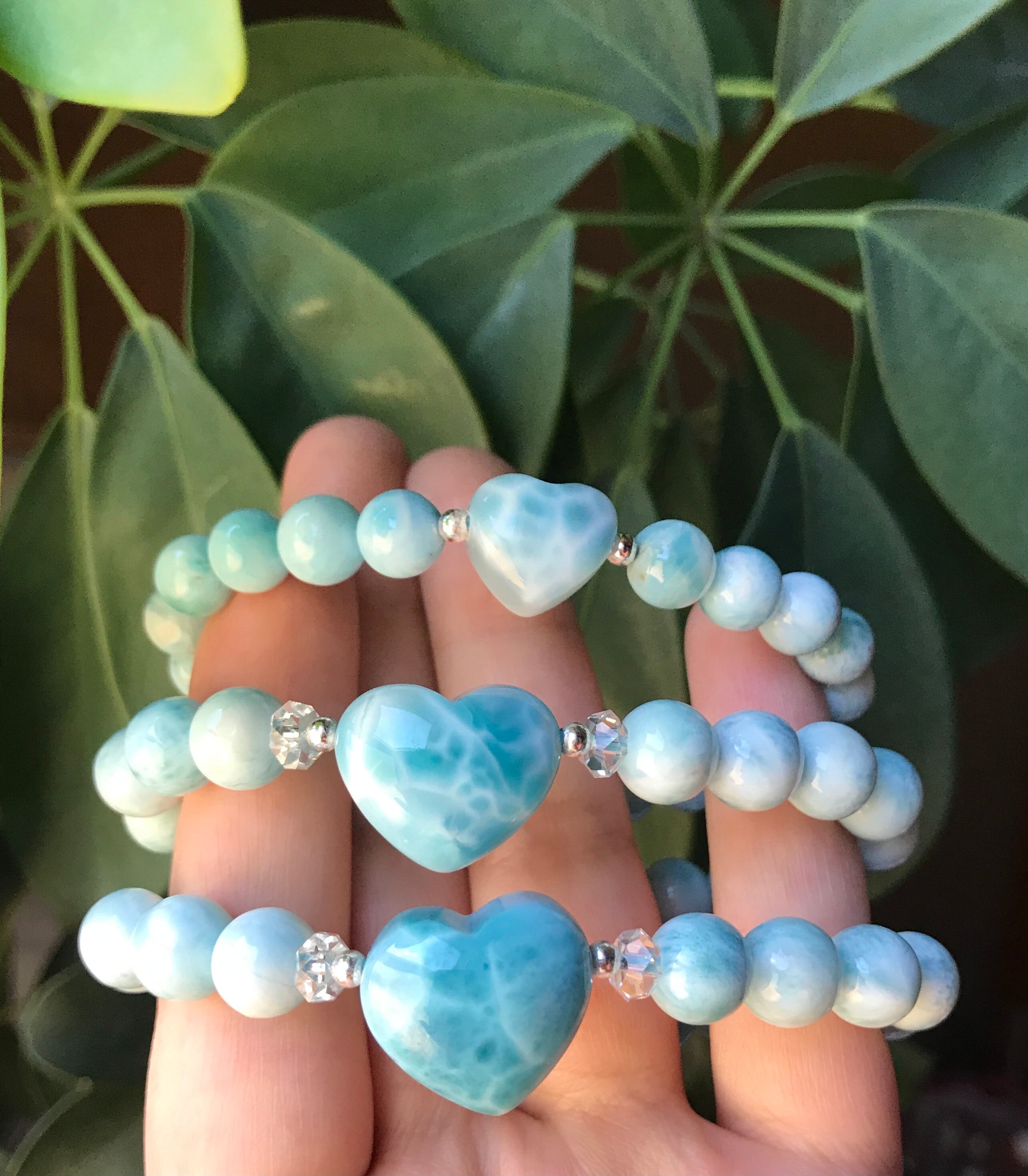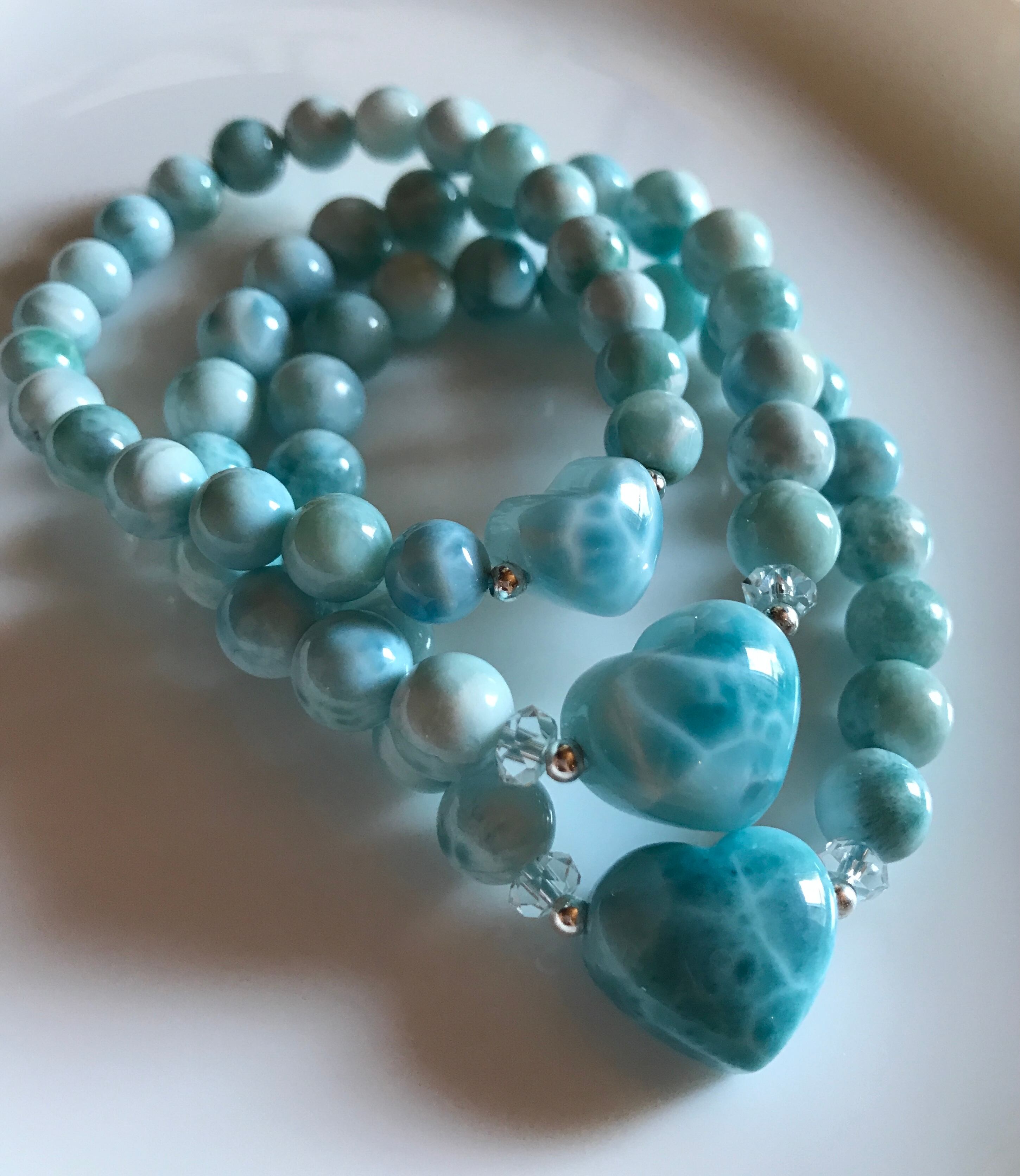 写真後半の8枚は別売りのラリマーハートデザインブレスレットA、Bとの比較です。商品はひとつのお値段です。