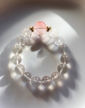ほんのりピンクの大玉ピンクサゲと透明度の高いスターローズクォーツのデザインブレスレットです。