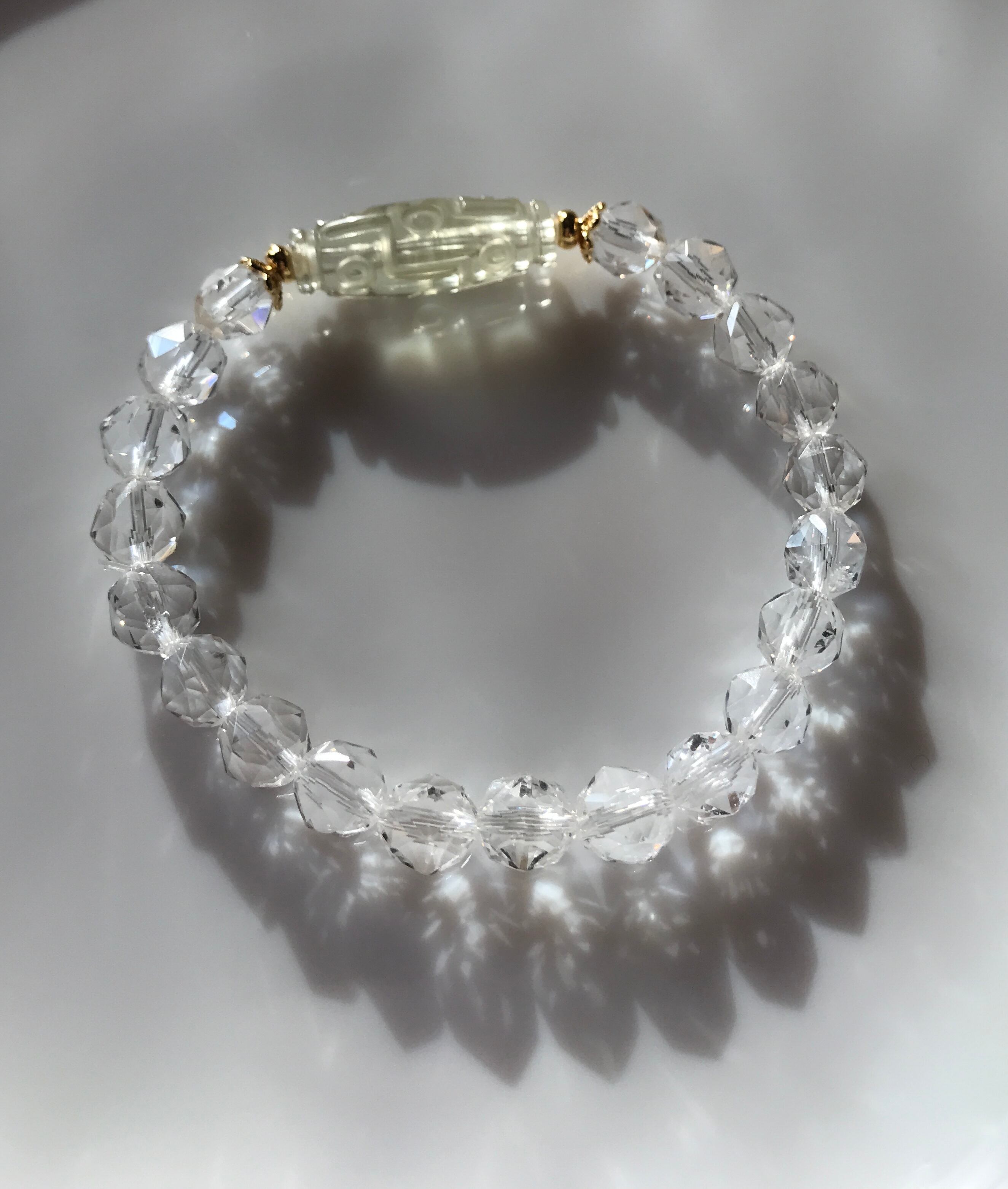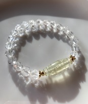 透明度の高い高品質リビアングラスの九眼天珠とキラキラダイヤモンドカットの水晶のシンプルなデザインブレスレットです。