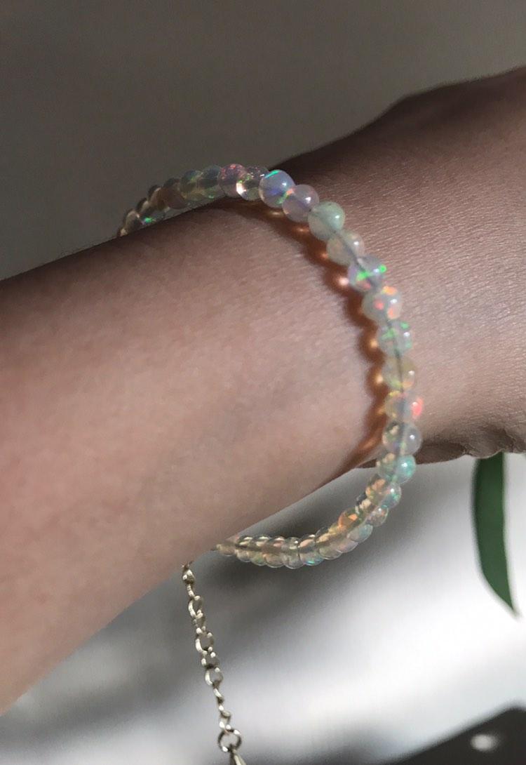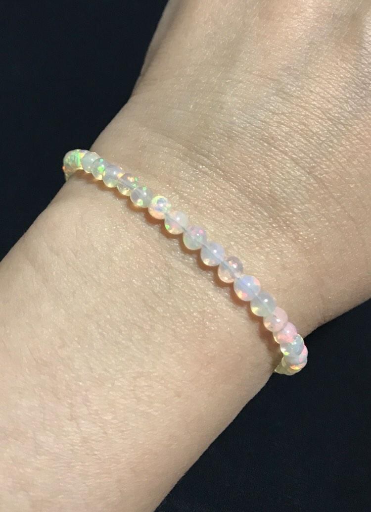 エチオピアンプレシャスオパール丸珠ブレスレット 暖色系 S